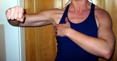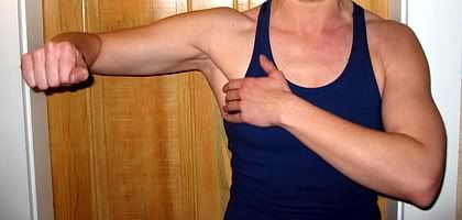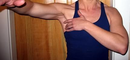 Note in the second picture how you can see the pec activating as the upper arm is pulled across the body.